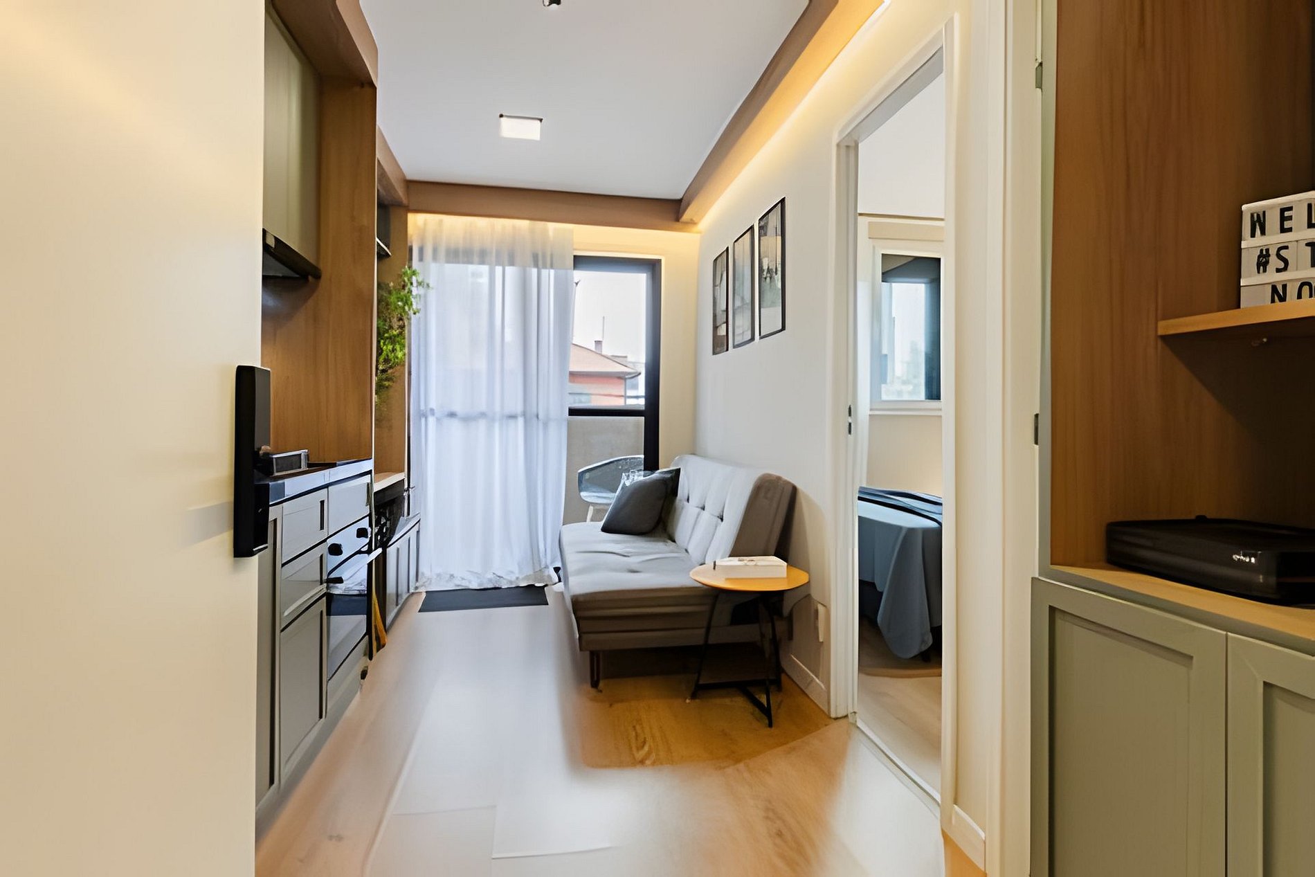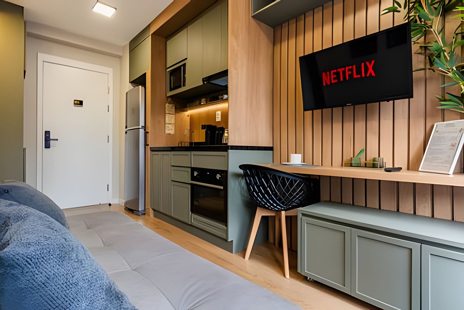 Bem-vindo ao Studio Nomad. Pensado nos mínimos detalhes para oferecer uma estadia tranquila, segura e com o conforto de casa. Estamos em Moema um dos bairros nobres e bem localizados de São Paulo. O apto é novo, moderno, completo, e perfeito para estadias curtas ou longas.Temos portaria 24h, academia 24hs, coworking e mais... - A 8 min. do Aero de Congonhas - Prox Consulado Americano - A 500m do Shopping Ibirapuera - A 500m Metrô Eucaliptos - A 15min do Pq. Ibirapuera - A 29min Allianz Parque Studio Completo, decorado e super aconchegante. Tudo o que você precisa para se sentir em casa, com a vantagem de estar no coração de São Paulo e área Nobre da capital. O que oferecemos: Check-in e Check-out Flexivel mediante consulta Self check-in, faça seu check-in sozinho com nossa fechadura eletrônica. Guarde as suas malas se precisar e acesso as áreas do condomínio antes do check-in. Dentro do Apartamento: Cama de casal confortável + sofá-cama (para até 4 pessoas) Ar-condicionado no quarto (split quente e frio) Janela Anti-ruído para seu melhor conforto Penteadeira com 2 espelhos e puff ou espaço de trabalho no quarto. Na Sala: Mesa grande para Home Office e 2 cadeiras / e ou Refeições Wi-Fi 500MB, Smart TV com streaming Cozinha completa com todos os utensílios necessarios e tambem filtro de agua, fogão, forno, geladeira, micro-ondas, panelas Oster, exaustor. Itens básicos disponíveis para seu café da manhã (sal, açúcar, café, chá, sanduicheira, chaleira elétrica e garrafa térmica) Banheiro com chuveiro tipo cascata, secador Gama Turbo, toalhas e sabonete liquido. Roupa de cama, toalhas de banho/rosto incluídas. Ferro e Tábua de passar roupas 📌 Importante e Atenção: Cobranças extras: Em caso de manchas nas roupas de cama e toalhas que não saiam na lavagem será cobrado o valor de compra de cada item manchado. Assim como qualquer item que seja quebrado ou danificado. Taxa de troca de enxoval: Sempre disponibilizamos roupa de cama e toalhas para os hospedes da reserva. A troca de roupa de cama ou item a mais deve ser solicitado mediante pagamento adicional. Prédio novo: pode haver ruídos de reforma em outras unidades. Piscina disponível somente para hóspedes da reserva. Toalhas extra de piscina disponível (consulte taxa) Não temos estacionamento no prédio (Há vagas na rua ou estacionamentos bem próximos) - Proximidades: Mercado Natural da Terra ao lado Quintal do Espeto Carinas 3min a pé -Hannover Fondue - Grandes Buffets e espaços para Eventos e Casamentos. -Acesso ao prédio somente com envio prévio do documento com foto dos hóspedes. Sem isso, a entrada será negada por norma e regras do condomínio. O hóspede pode utilizar as areas comuns do condomínio: - Portaria e Segurança 24 horas - Academia 24 horas - Lavanderia Compartilhada OMO - Coworking compartilhado - Piscina - Deck - Jardim - Pet place Respeite as regras do condominio e do Studio. Sujeito a cobrança ou multas. Veja na sessão regras e dentro do Apartamento. Podem entrar em contato sempre que precisar. Estaremos prontas a ajudar com qualquer duvida ou questões que tenham. Se precisam de dicas e ajuda com algo nao hesite em falar. ;)