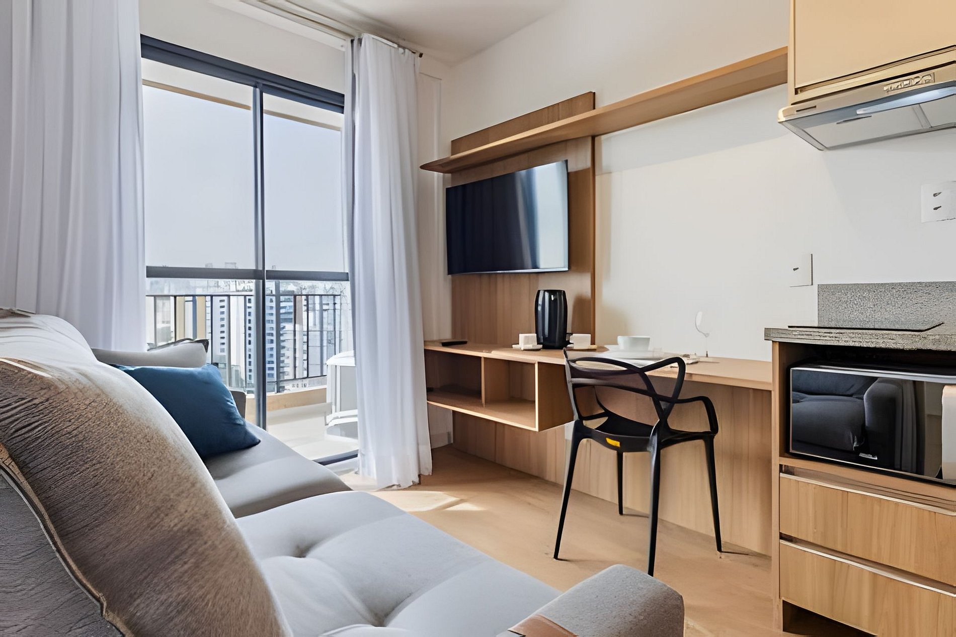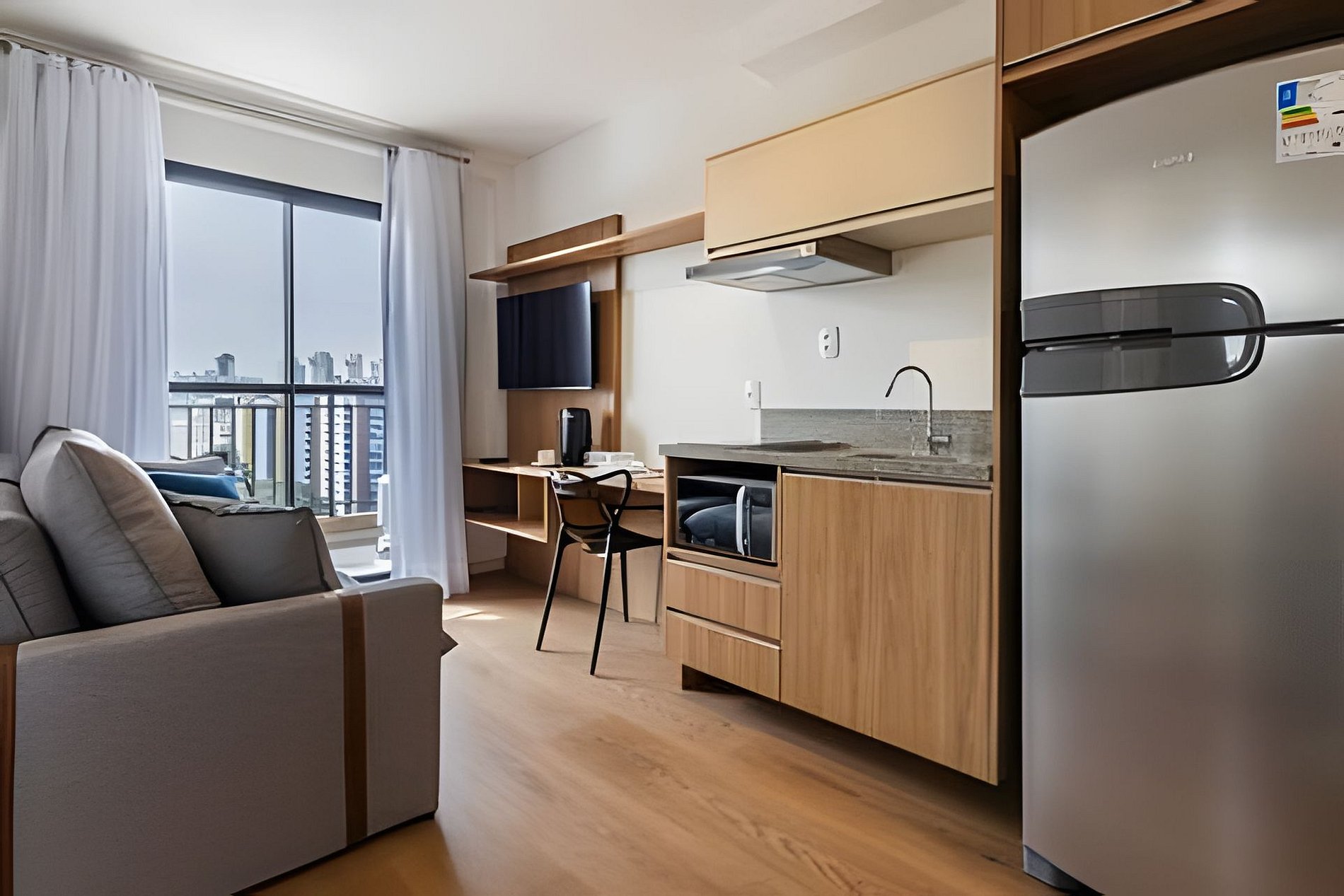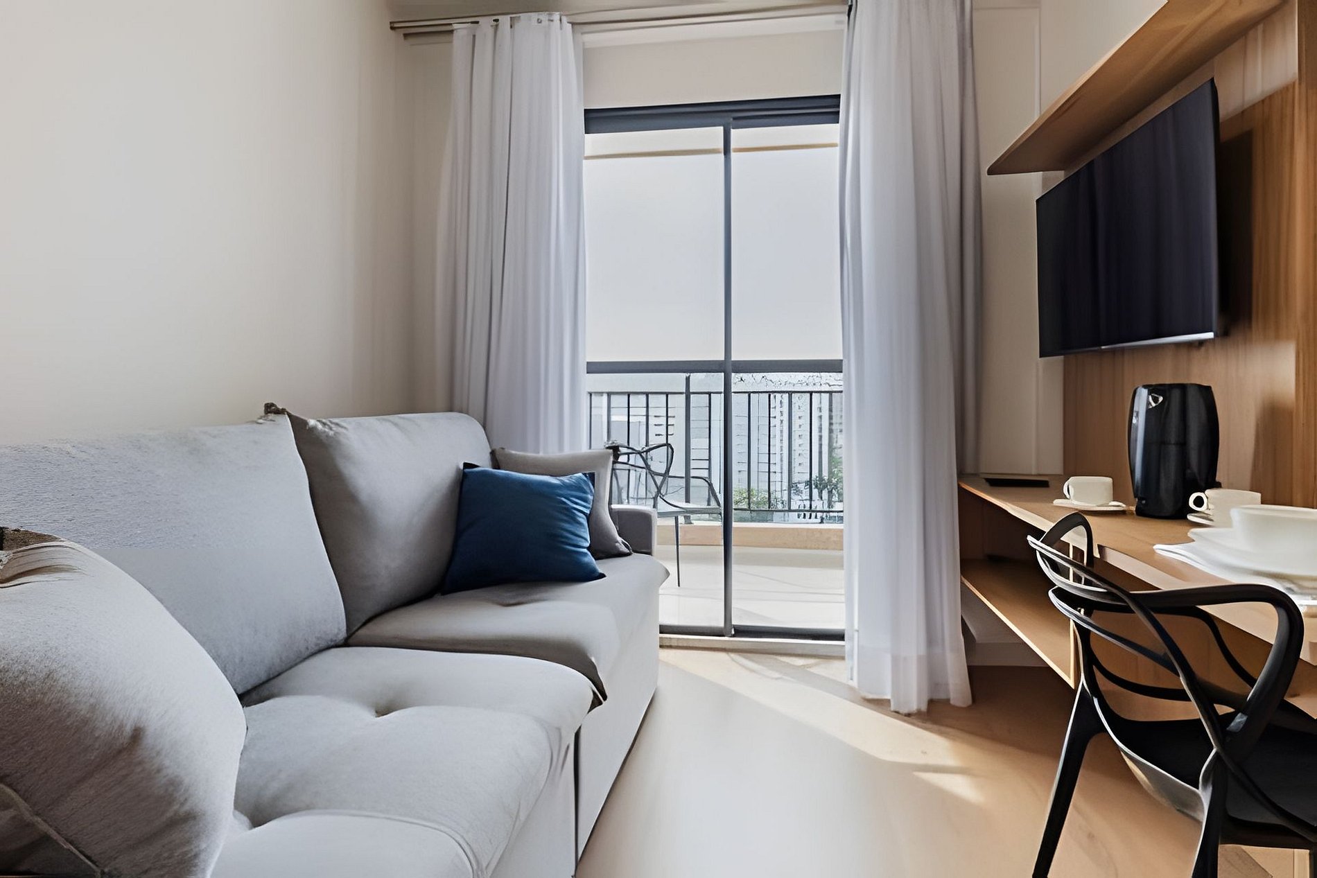 Apartamento novo, moderno e completo, localizado em Moema, area nobre e perto do Aeroporto de Congonhas, Shop Ibirapuera, e 600m do metrô. Ótimos restaurantes, comércios e mercados proximo. Tudo pensado para quem valoriza conforto, praticidade e bom gosto. Situado no 14º andar, com vista privilegiada e muita luz natural, o studio tem tudo o que você precisa para se sentir em casa. Para Reservas de grupo, temos alguns studios no mesmo prédio, nos envie uma mensagem. Check-in flexível. Cada detalhe foi planejado para tornar a sua estadia confortável, prática e tranquila— seja para uma pausa merecida, uma rotina de trabalho ou para aproveitar o melhor da cidade sem pressa. O apto é completo com todos os itens que precisa para o dia-a-dia. Cozinha bem equipada, mesa de trabalho, wi-fi com alta velocidade, ar condicionado. Facilidades que tornam sua experiência mais tranquila: – Check-in e check-out flexíveis (sob consulta) – Self check-in com fechadura eletrônica – Guarda-volumes e acesso às áreas comuns antes do check-in Dentro do apartamento: – Cama de casal confortável + sofá-cama (acomoda até 4 pessoas) – Ar-condicionado split – Mesa de trabalho /refeição espaçosa com duas cadeiras – Wi-Fi de alta velocidade – Smart TV com aplicativos de streaming Cozinha completa equipada para o dia a dia: – Fogão, geladeira, micro-ondas e exaustor – Cafeteira – Panelas e utensílios variados Banheiro confortável: – Chuveiro – Secador de cabelo Profissional linha Hotel – Toalhas de banho e rosto 📌 Importante e Atenção: Cobranças extras: Em caso de manchas nas roupas de cama e toalhas que não saiam na lavagem será cobrado o valor de compra de cada item manchado. Assim como qualquer item que seja quebrado ou danificado. Taxa de troca de enxoval: Sempre disponibilizamos roupa de cama e toalhas para os hospedes da reserva. A troca de roupa de cama ou item a mais deve ser solicitado mediante pagamento adicional. – O prédio é novo e pode haver ruídos ocasionais de reformas em outras unidades – Piscina disponível somente para hóspedes incluídos na reserva (toalhas extras sob consulta) – Não há estacionamento no edifício, mas há vagas na rua e estacionamentos privados nas proximidades ATENÇÃO!! – O acesso ao prédio é autorizado apenas após o envio antecipado do documento com foto de todos os hóspedes, conforme regras do condomínio. Sem documento a entrada não será liberada e a reserva cancelada. Localização privilegiada: – Ao lado do Mercado Natural da Terra – A 3 minutos a pé do Quintal do Espeto Carinás – Próximo ao Hannover Fondue e aos principais buffets e espaços para eventos e casamentos Acesso dos hóspedes O hóspede pode utilizar as áreas comuns do condomínio: - Portaria e Segurança 24 horas - Academia 24 horas - Lavanderia Compartilhada OMO - Coworking compartilhado - Piscina - Deck - Jardim - Pet place Respeite as regras do condominio e do Studio. Sujeito a cobrança ou multas. Veja na sessão regras e dentro do Apartamento.