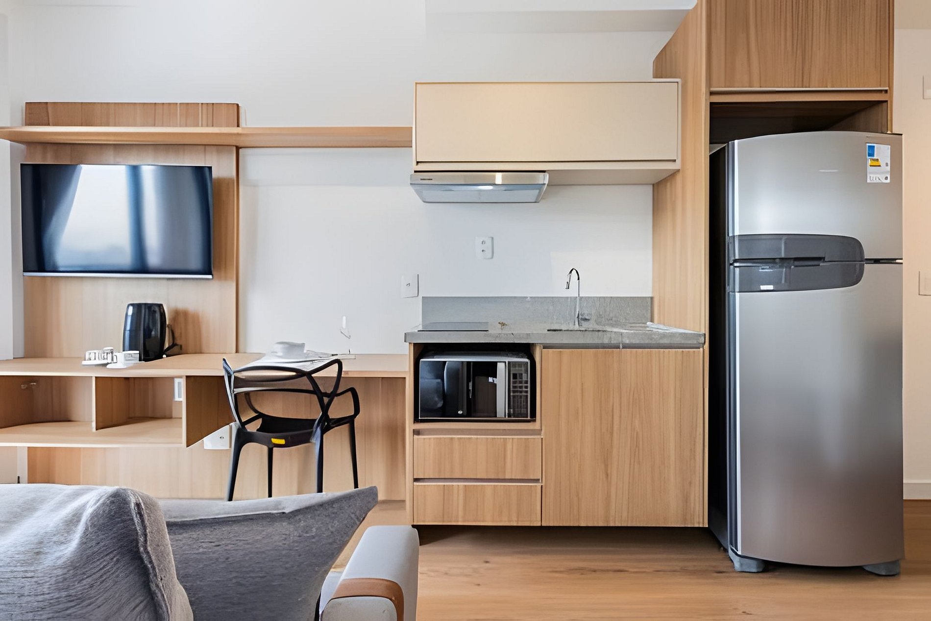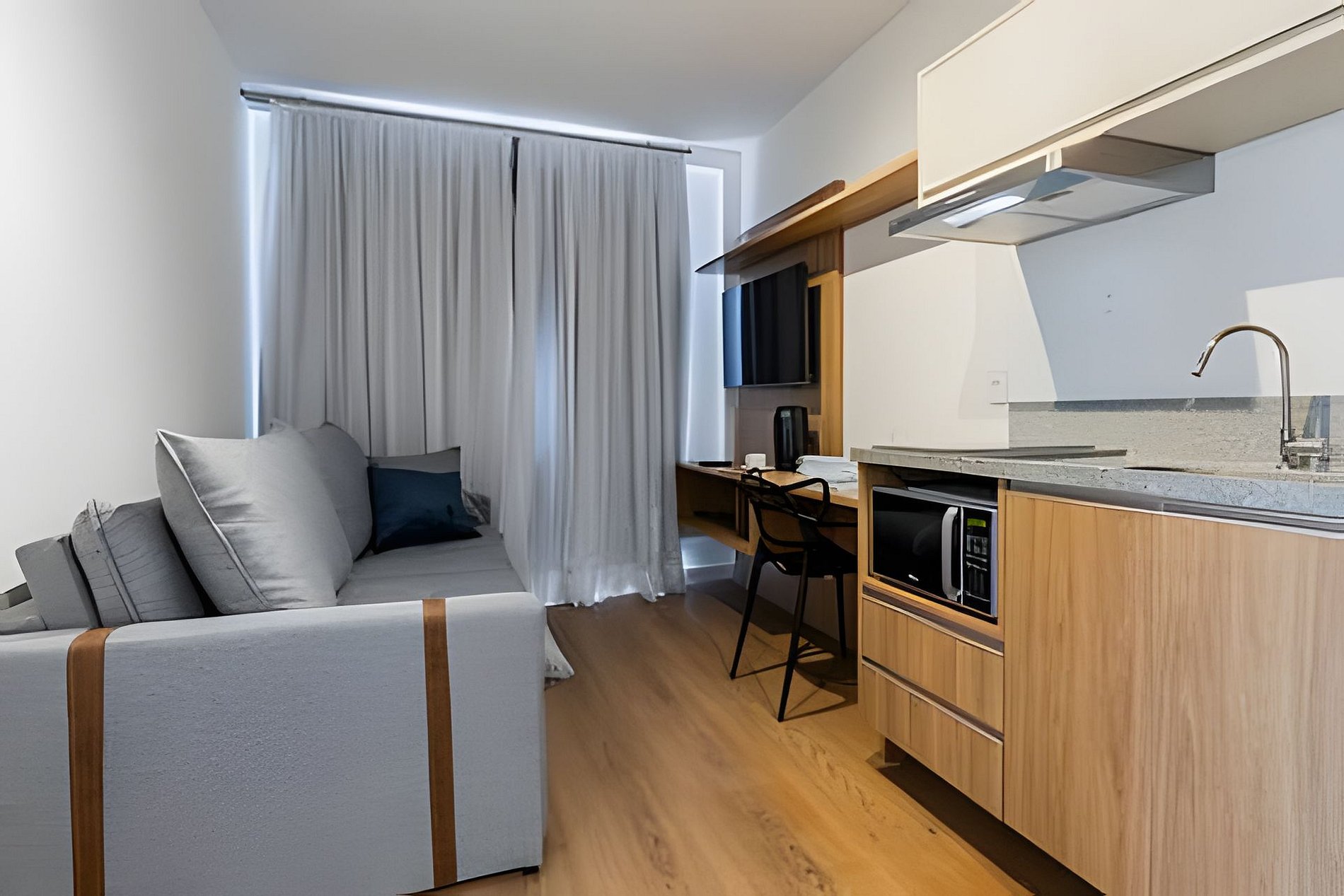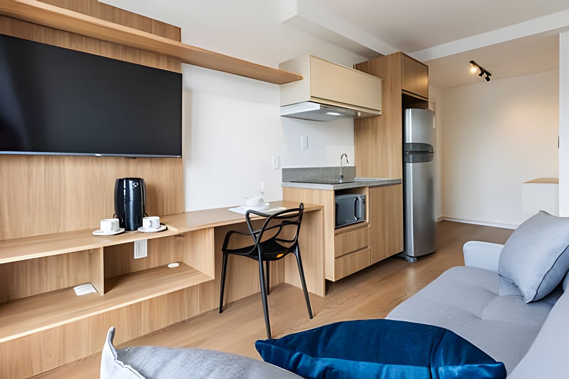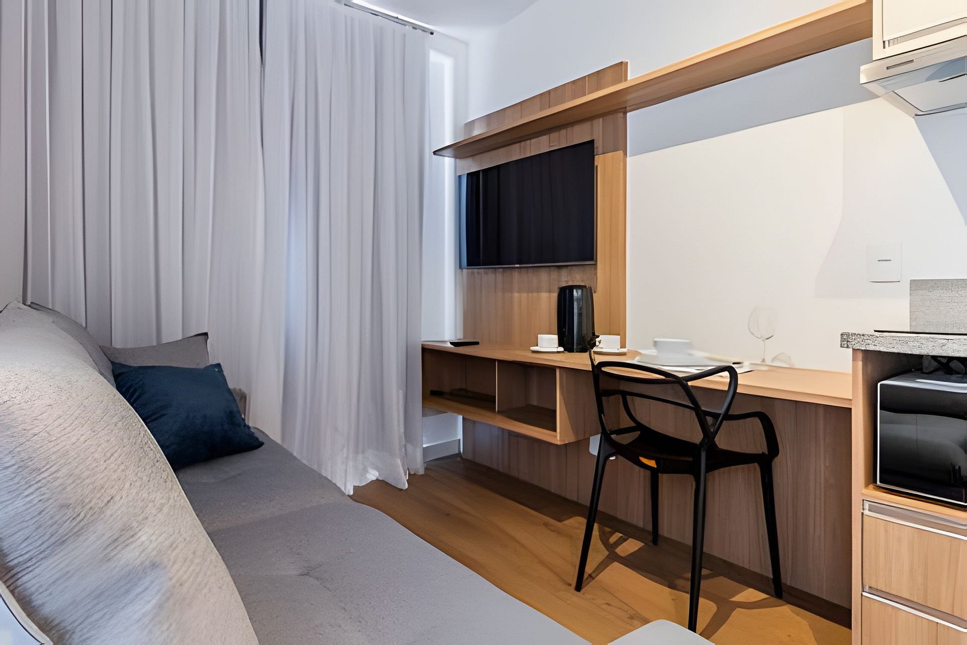 Apartamento novo, moderno e completo, localizado em Moema, area nobre e perto do Aeroporto de Congonhas, Shop Ibirapuera, e 600m do metrô. Ótimos restaurantes, comércios e mercados proximo. Tudo pensado para quem valoriza conforto, praticidade e bom gosto. Situado no 14º andar, com vista privilegiada e muita luz natural, o studio tem tudo o que você precisa para se sentir em casa. Para Reservas de grupo, temos alguns studios no mesmo prédio, nos envie uma mensagem. Check-in flexível. Cada detalhe foi planejado para tornar a sua estadia confortável, prática e tranquila— seja para uma pausa merecida, uma rotina de trabalho ou para aproveitar o melhor da cidade sem pressa. O apto é completo com todos os itens que precisa para o dia-a-dia. Cozinha bem equipada, mesa de trabalho, wi-fi com alta velocidade, ar condicionado. Facilidades que tornam sua experiência mais tranquila: – Check-in e check-out flexíveis (sob consulta) – Self check-in com fechadura eletrônica – Guarda-volumes e acesso às áreas comuns antes do check-in Dentro do apartamento: – Cama de casal confortável + sofá-cama (acomoda até 4 pessoas) – Ar-condicionado split – Mesa de trabalho /refeição espaçosa com duas cadeiras – Wi-Fi de alta velocidade – Smart TV com aplicativos de streaming Cozinha completa equipada para o dia a dia: – Fogão, geladeira, micro-ondas e exaustor – Cafeteira – Panelas e utensílios variados Banheiro confortável: – Chuveiro – Secador de cabelo Profissional linha Hotel – Toalhas de banho e rosto 📌 Importante e Atenção: Cobranças extras: Em caso de manchas nas roupas de cama e toalhas que não saiam na lavagem será cobrado o valor de compra de cada item manchado. Assim como qualquer item que seja quebrado ou danificado. Taxa de troca de enxoval: Sempre disponibilizamos roupa de cama e toalhas para os hospedes da reserva. A troca de roupa de cama ou item a mais deve ser solicitado mediante pagamento adicional. – O prédio é novo e pode haver ruídos ocasionais de reformas em outras unidades – Piscina disponível somente para hóspedes incluídos na reserva (toalhas extras sob consulta) – Não há estacionamento no edifício, mas há vagas na rua e estacionamentos privados nas proximidades ATENÇÃO!! – O acesso ao prédio é autorizado apenas após o envio antecipado do documento com foto de todos os hóspedes, conforme regras do condomínio. Sem documento a entrada não será liberada e a reserva cancelada. Localização privilegiada: – Ao lado do Mercado Natural da Terra – A 3 minutos a pé do Quintal do Espeto Carinás – Próximo ao Hannover Fondue e aos principais buffets e espaços para eventos e casamentos Acesso dos hóspedes O hóspede pode utilizar as áreas comuns do condomínio: - Portaria e Segurança 24 horas - Academia 24 horas - Lavanderia Compartilhada OMO - Coworking compartilhado - Piscina - Deck - Jardim - Pet place Respeite as regras do condominio e do Studio. Sujeito a cobrança ou multas. Veja na sessão regras e dentro do Apartamento.